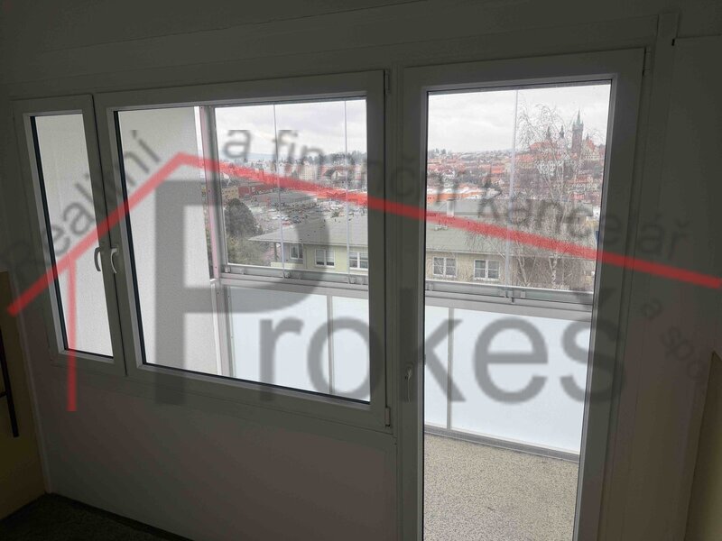 V bytě jsou plastová okna se žaluziemi, díky kterým je uvnitř příjemné